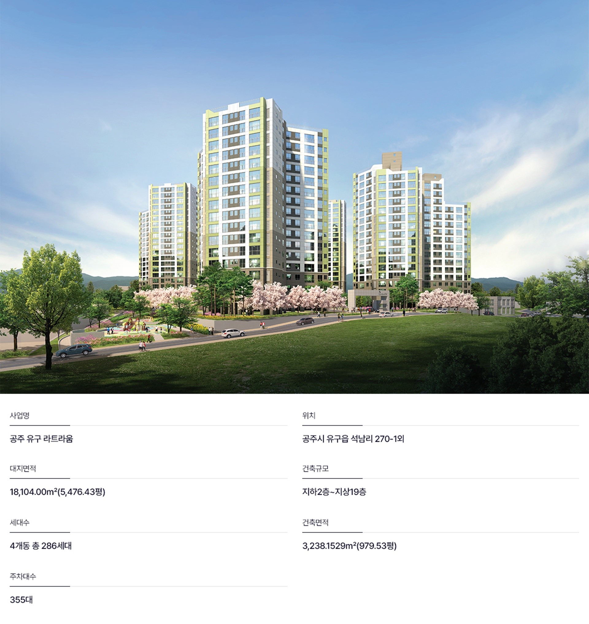 SPECIAL 01 공주 유구 라트라움 브랜드가 완성하는 랜드마크의 품격 도심 속 새로운 중심, 브랜드 가치와 상징성을 모두 갖춘 프리미엄 주거 랜드마크입니다. 더 알아보기 SPECIAL 02 도심을 빠르게 잇는 초연결 교통 프리미엄 확장되는 교통망과 풍부한 생활 인프라가 만나는 핵심 입지, 미래의 중심에서 새로운 가치를 누리세요. 더 알아보기 SPECIAL 03 합리적인 분양 혜택과 스마트 금융 프로그램 맞춤형 금융 혜택과 유연한 분양 조건으로 초기 부담은 낮추고, 기회는 높였습니다. 더 알아보기 SPECIAL 04 세심한 설계로 완성된 품격 있는 주거공간 공주 유구 라트라움 효율적인 공간 구성과 쾌적한 환경 설계로 일상의 여유와 만족을 더했습니다. 더 알아보기 SPECIAL 05 미래를 선도하는 가치, 지속되는 개발의 중심 공주 유구 라트라움 풍부한 개발 호재와 성장 잠재력을 품은 입지로 높은 미래 가치를 기대할 수 있습니다. 더 알아보기 SPECIAL 01 공주 유구 라트라움 브랜드가 완성하는 랜드마크의 품격 도심 속 새로운 중심, 브랜드 가치와 상징성을 모두 갖춘 프리미엄 주거 랜드마크입니다. SPECIAL 02 도심을 빠르게 잇는 초연결 교통 프리미엄 확장되는 교통망과 풍부한 생활 인프라가 만나는 핵심 입지, 미래의 중심에서 새로운 가치를 누리세요. SPECIAL 03 합리적인 분양 혜택과 스마트 금융 프로그램 맞춤형 금융 혜택과 유연한 분양 조건으로 초기 부담은 낮추고, 기회는 높였습니다. SPECIAL 04 세심한 설계로 완성된 품격 있는 주거공간 공주 유구 라트라움 효율적인 공간 구성과 쾌적한 환경 설계로 일상의 여유와 만족을 더했습니다. SPECIAL 05 미래를 선도하는 가치, 지속되는 개발의 중심 공주 유구 라트라움 풍부한 개발 호재와 성장 잠재력을 품은 입지로 높은 미래 가치를 기대할 수 있습니다.